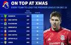 英超最近33支圣诞节登顶的球队有17支夺冠,近7年仅3队夺冠